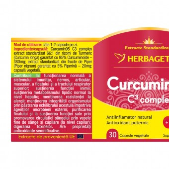 Curcumin95 C3 complex este un extract standardizat din Curcuma longa cu minim 95% curcuminoide, unul dintre cele mai puternice și intense extracte din lume. Acțiunile sale benefice în cazul reducerii stresului oxidativ, a inflamației sau a acțiunii celulelor tumorale îl recomandă ca unul din cele mai eficiente extracte naturale cunoscute.